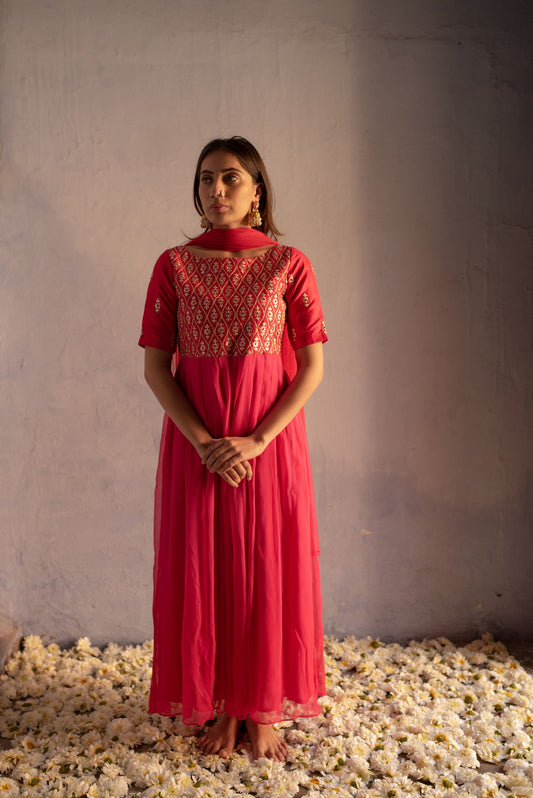 ColourGAJRI PINK FabricRAW SILK - CHIFFON GOWN, NET DUPATTA Pieces in the setG+D (2 PCS)...