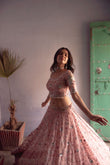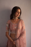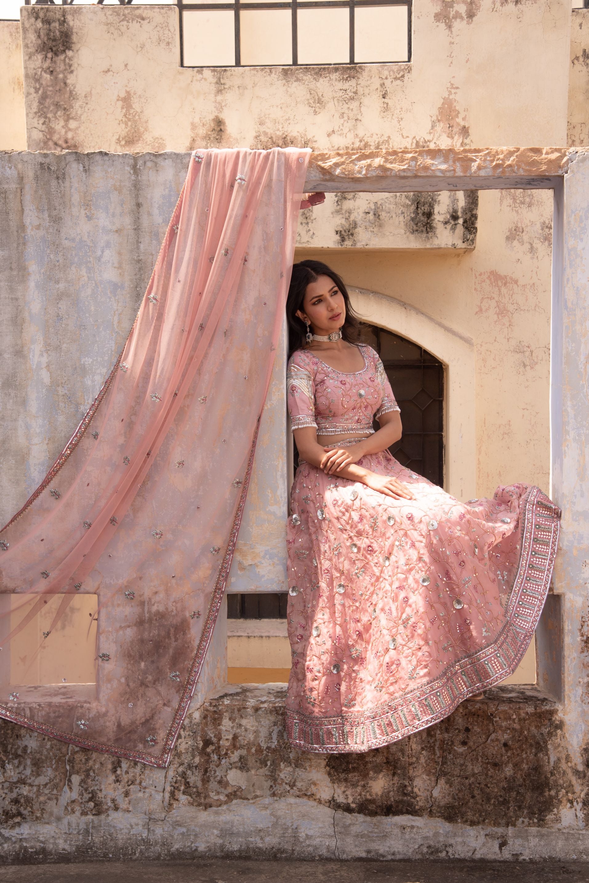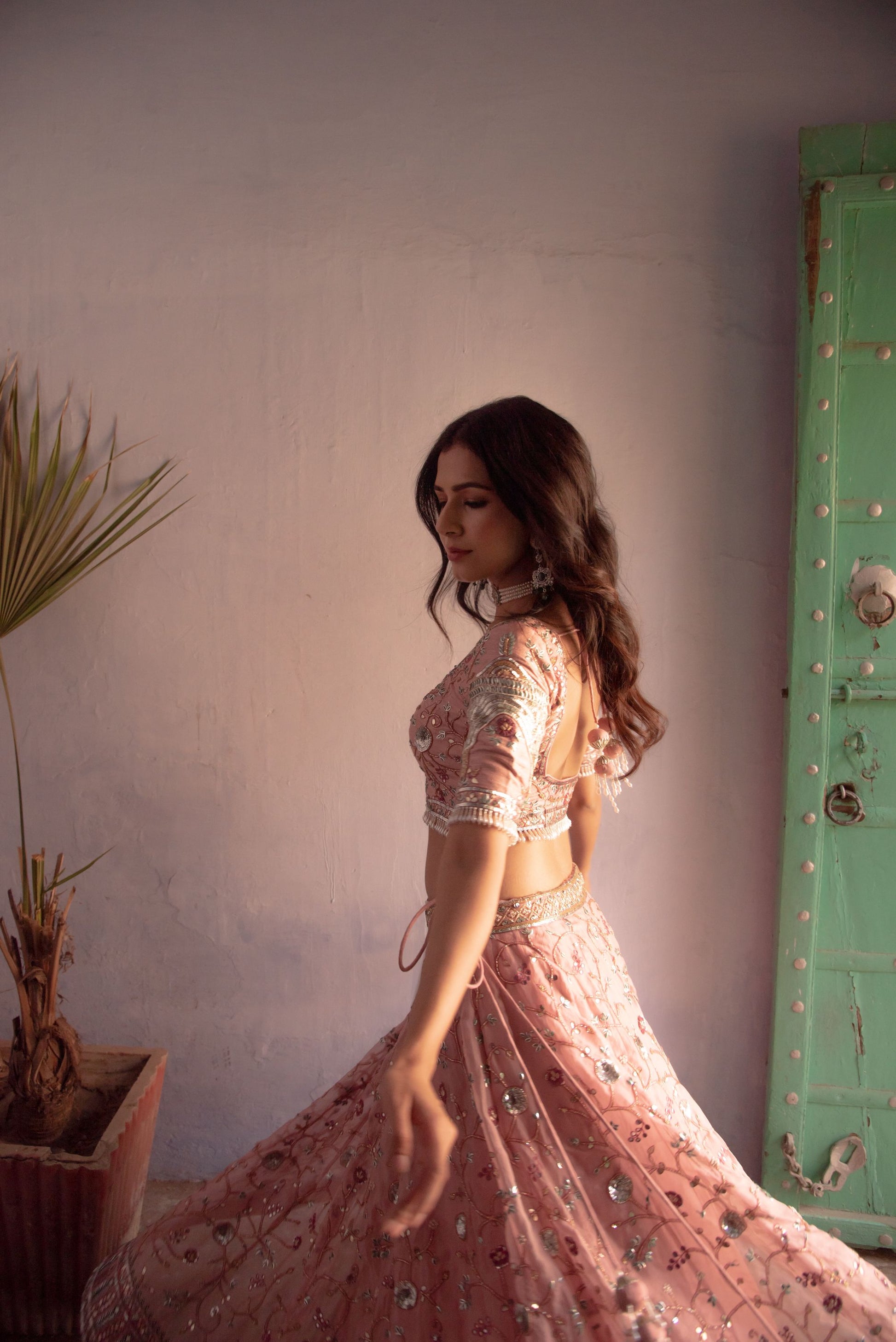 Organza lehenga embellished with sequins and crystals all over the lehenga & blouse and come along a nice soft net dupatta with border and booties all over